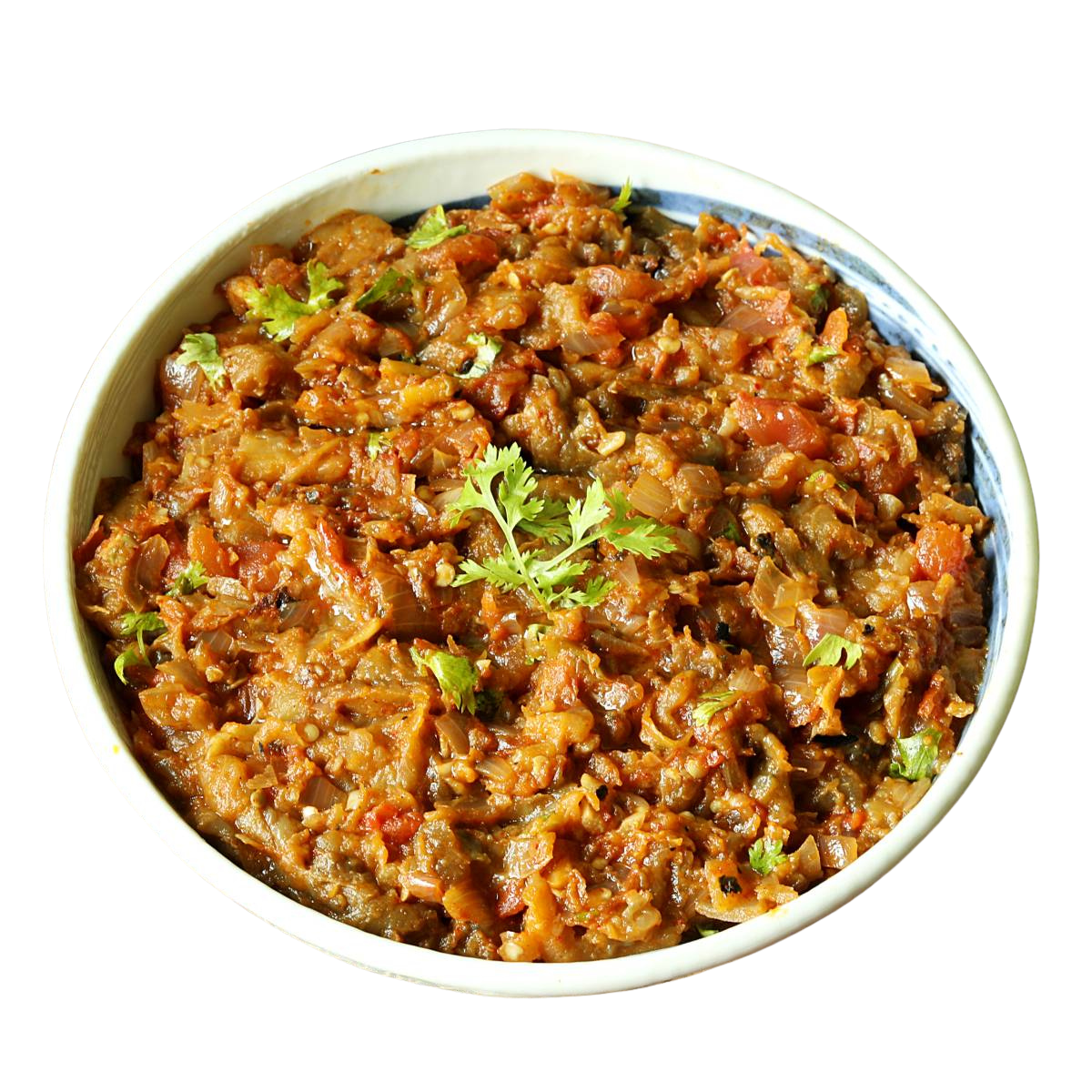 Baingan Bharta is a traditional North Indian dish prepared with eggplant that is roasted over an open flame to give it a rich smoky flavor. The roasted eggplant is then mashed and cooked with onions, tomatoes, garlic, ginger, and a blend of aromatic spices. This creates a delicious and hearty dish with a soft texture and bold taste. Baingan Bharta is commonly served with roti, naan, or steamed basmati rice for a comforting and flavorful vegetarian meal. 😋🍆🍛