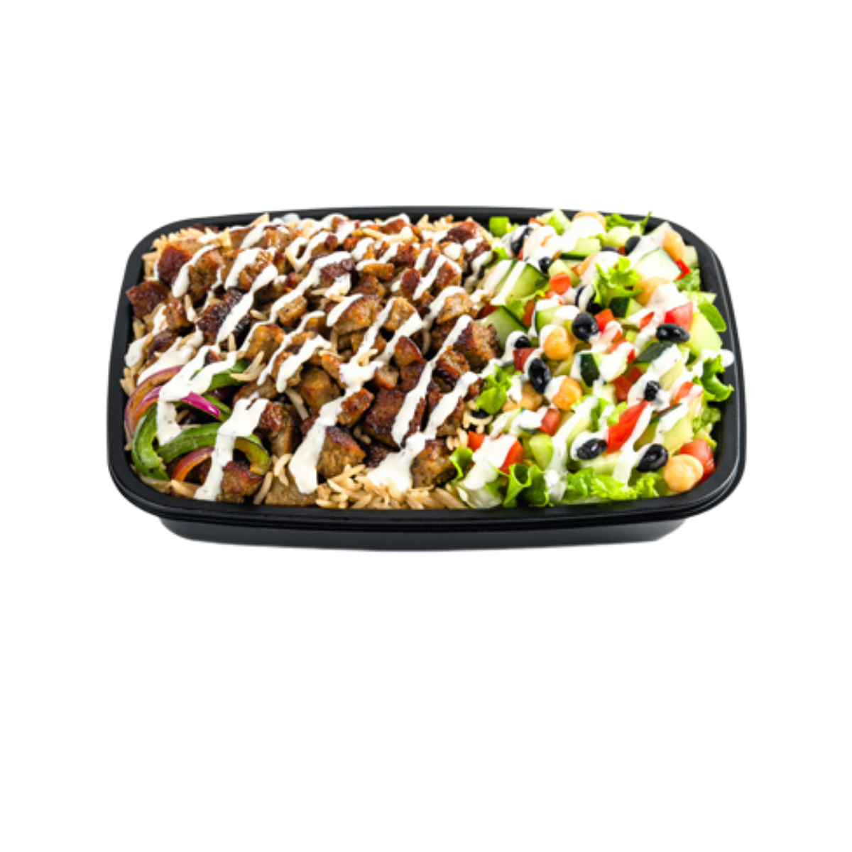 Lamb and Chicken Over Rice is a delicious combo platter that brings together tender, seasoned lamb and juicy grilled chicken served over a bed of fluffy, aromatic rice. The meats are prepared with flavorful spices and cooked to perfection, creating a rich and satisfying taste. Often paired with fresh salad and house sauces, this dish offers a perfect balance of bold flavors and hearty textures, making it a popular and filling meal choice. 😋🍖🍗🍚