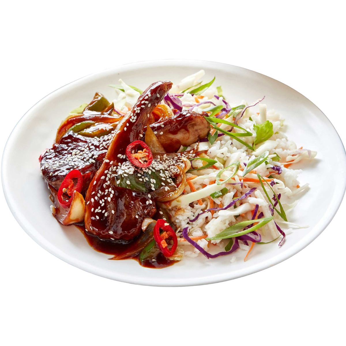 Lamb Chops are tender pieces of lamb marinated in authentic spices and yogurt, char-grilled and served with a choice of rice or fresh salad. 🍖