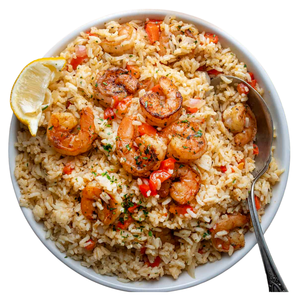 Shrimp Over Rice features juicy, perfectly seasoned shrimp served over a bed of flavorful rice. 🍤🍚